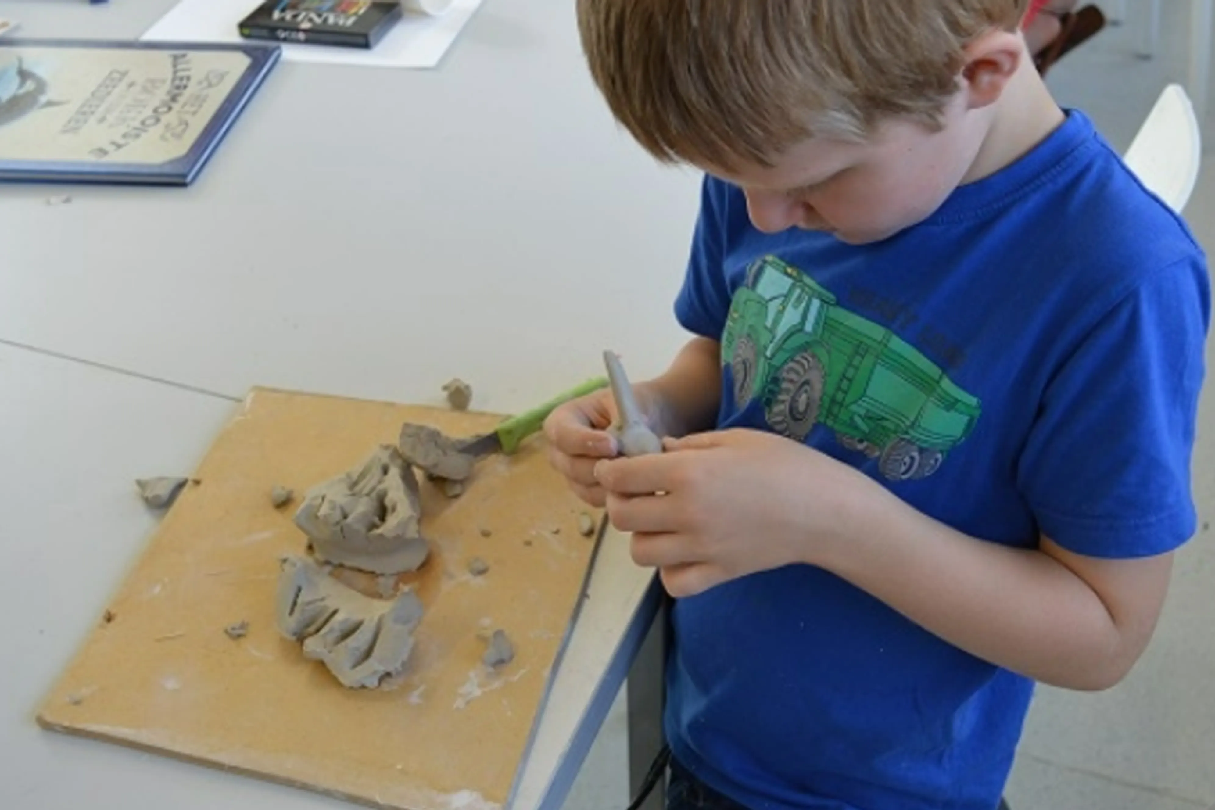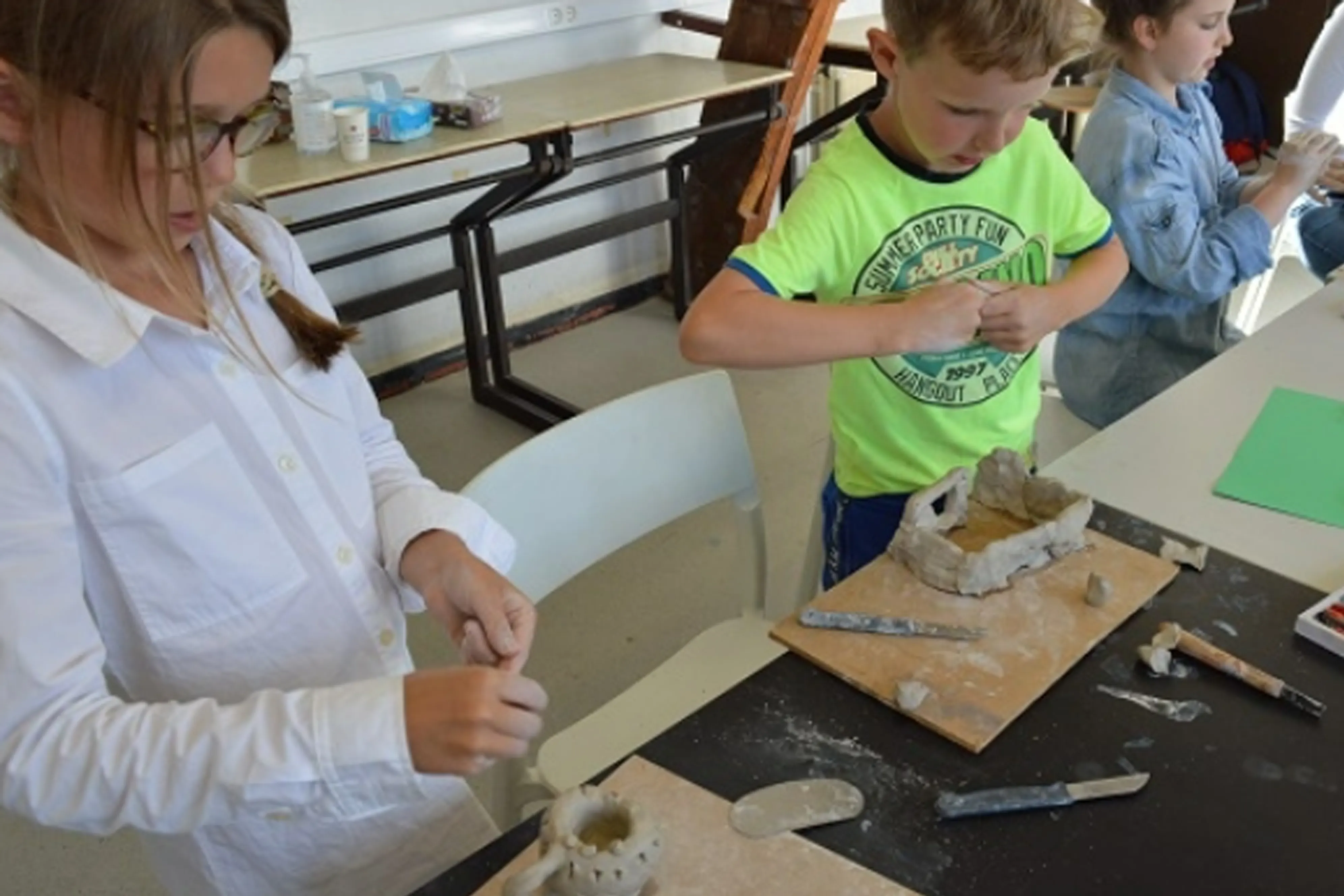 - Werken met materialen als houtskool, hout, klei, verf, speksteen, papier-maché