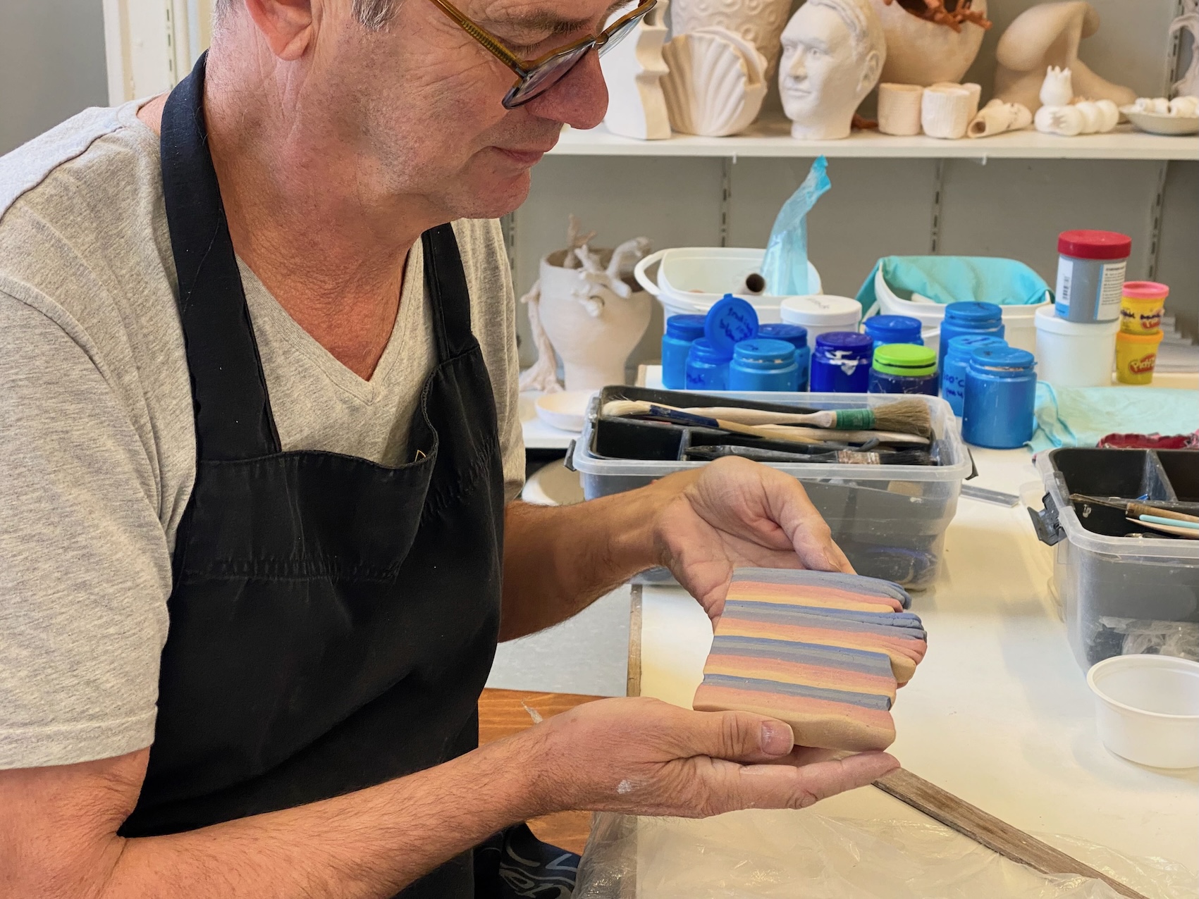 - Klei, pigmenten en glazuren zijn verkrijgbaar in het verkooppunt van Nieuwe Veste. De prijs voor het bakken is inbegrepen.