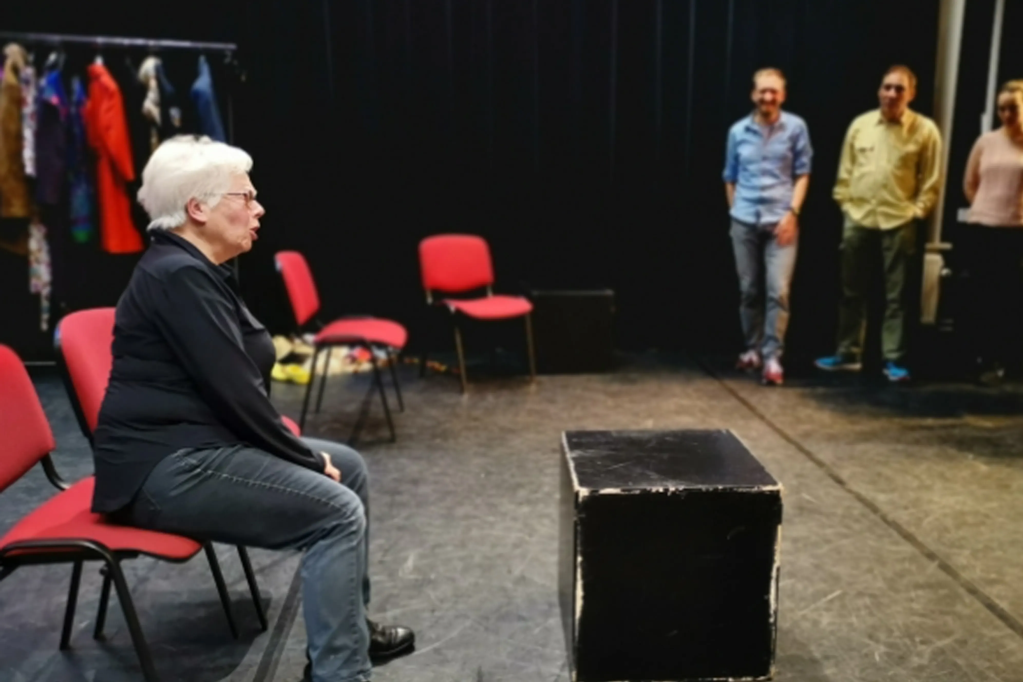 - In de theaterzaal is het verplicht binnenschoenen met een zwarte/bruine zool of schone sokken te dragen. Het is niet toegestaan om met buitenschoenen de theatervloer te betreden.