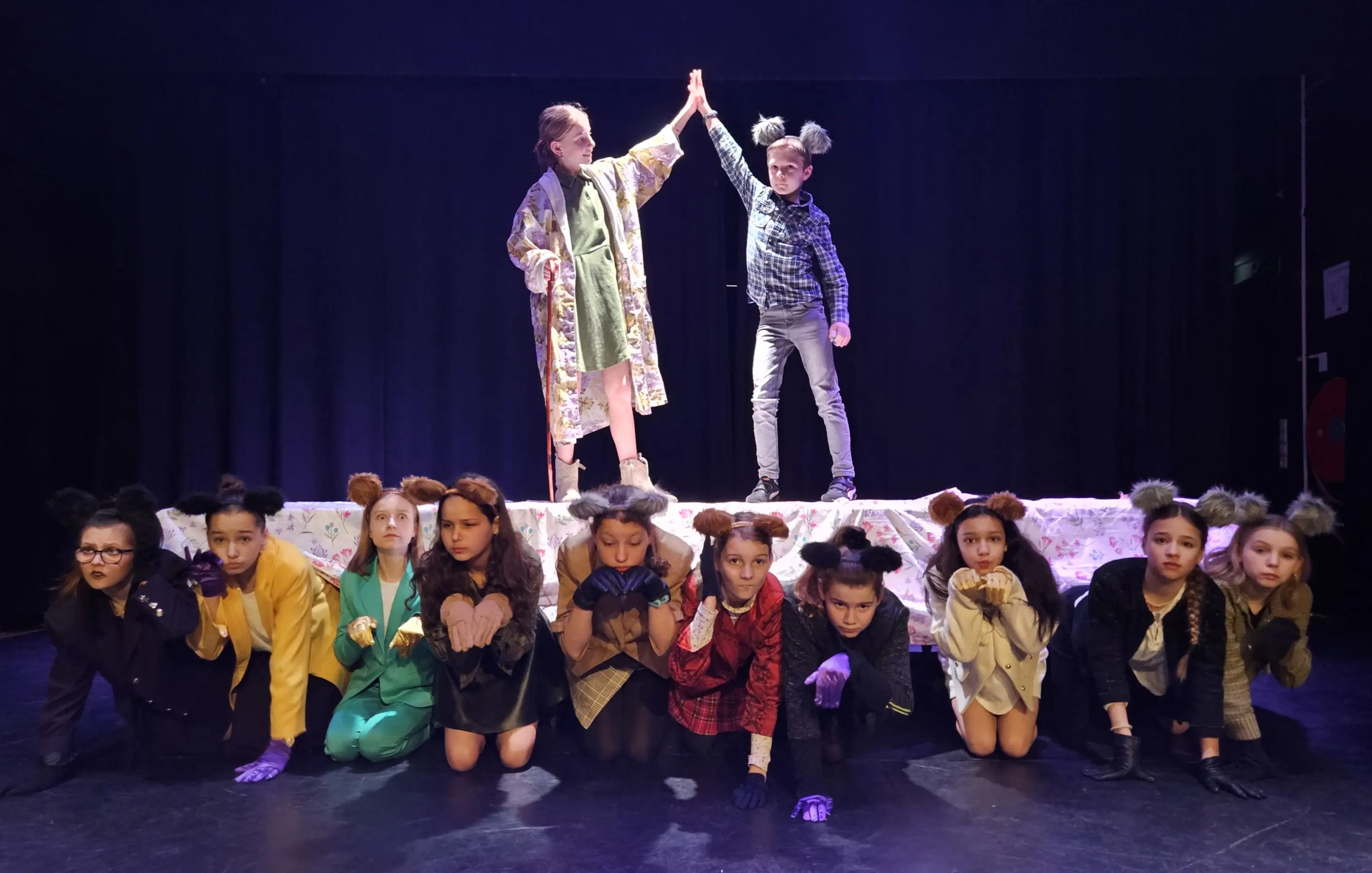 Welkom bij de theaterproductie 10-12 jaar! Na een of enkele jaren theater- of musicalklas is het nu tijd om aan een echte theatervoorstelling te werken met een script, rollen, decor, theaterlichten, kostuums, flyers en natuurlijk: een volle theaterzaal.