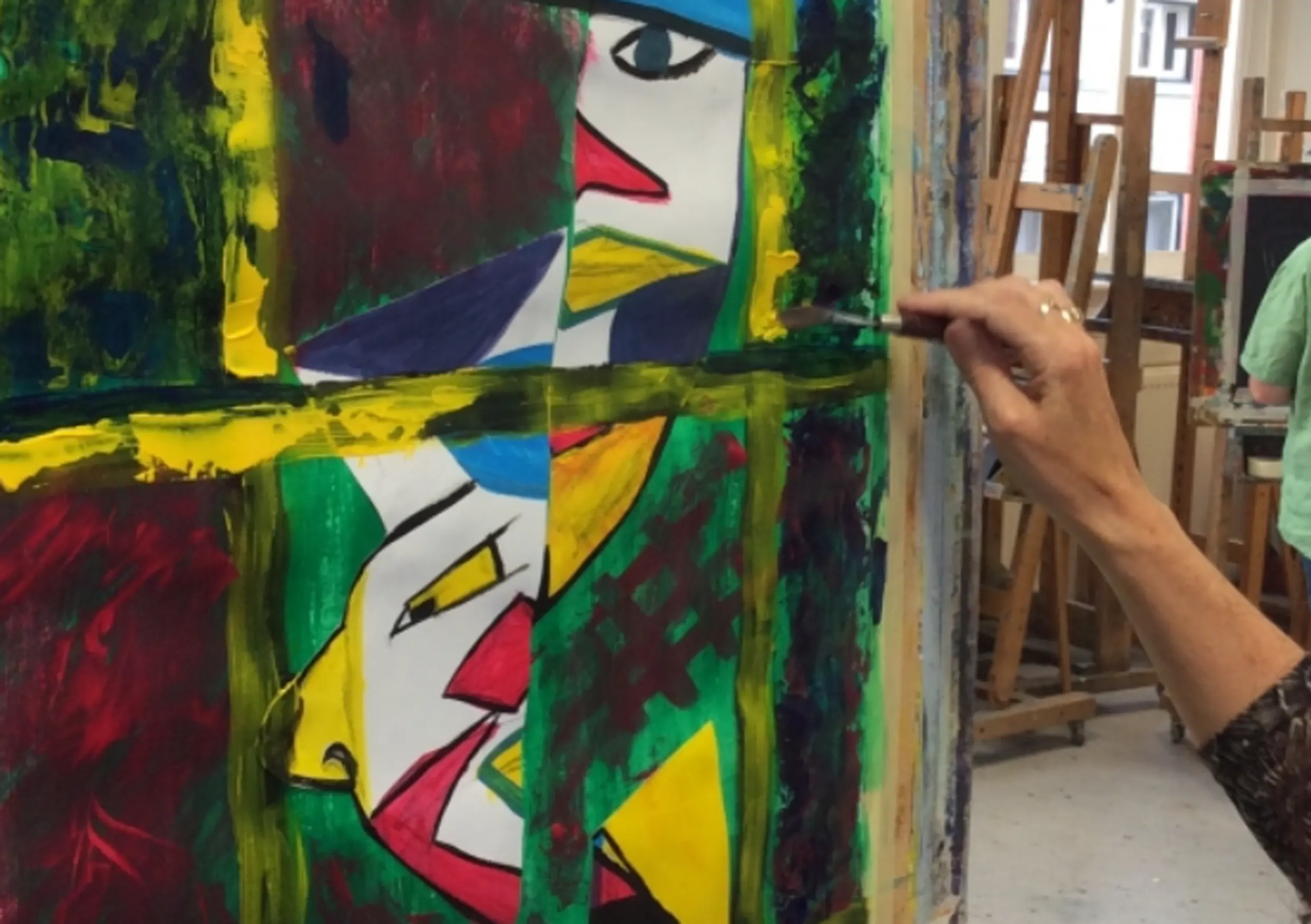 Je experimenteert met verschillende schilder- en tekentechnieken en collage- en combinatietechnieken. Ook ga je aan de slag met diverse materialen en schilderstijlen in een sfeer van niet denken maar doen. Zo kom je op een ontspannen manier ‘in de flow’. Terloops maak je kennis met moderne kunststijlen die je spontaan verwerkt in je creaties. De docent reikt met inspirerende opdrachten vertrekpunten aan die je helpen op te starten en verder te komen. Ook word je uitgenodigd om zelf stil te worden, je binnenwereld te verkennen en je verbeelding te stimuleren om van daaruit te gaan schilderen. We beginnen met vormonderzoek om van daaruit steeds meer spontaniteit en verbeelding toe te laten. Tijdens de les kijk je ook bij elkaar en breng je elkaar op ideeën. Aan het einde van de les wordt er geëvalueerd. Gedurende de cursus komt je persoonlijke stijl en handschrift duidelijk tevoorschijn.