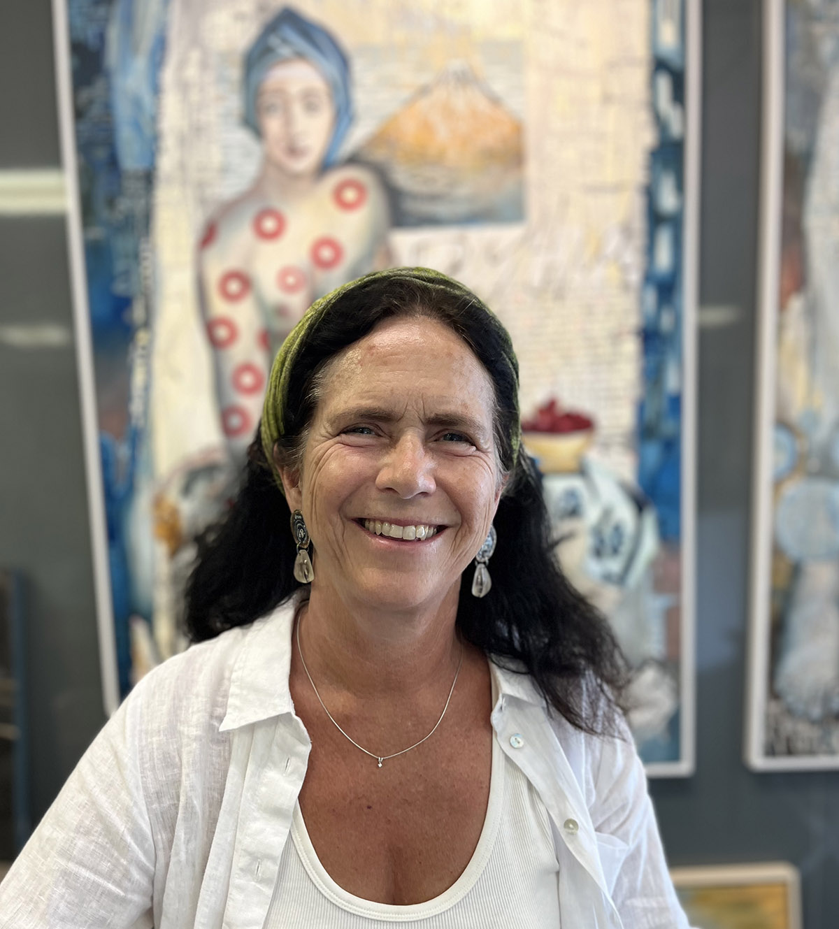 Mijn levensmotto ‘Blijf roeren in het theekopje’ werd een filosofisch uitgangspunt voor mijn kunst. Daarnaast heb ik een grote fascinatie voor bomen, wat terugkomt in mijn schilderijen. Ook schilder ik portretten/koppen en ‘de vrouw’ als thema komt vaak langs.