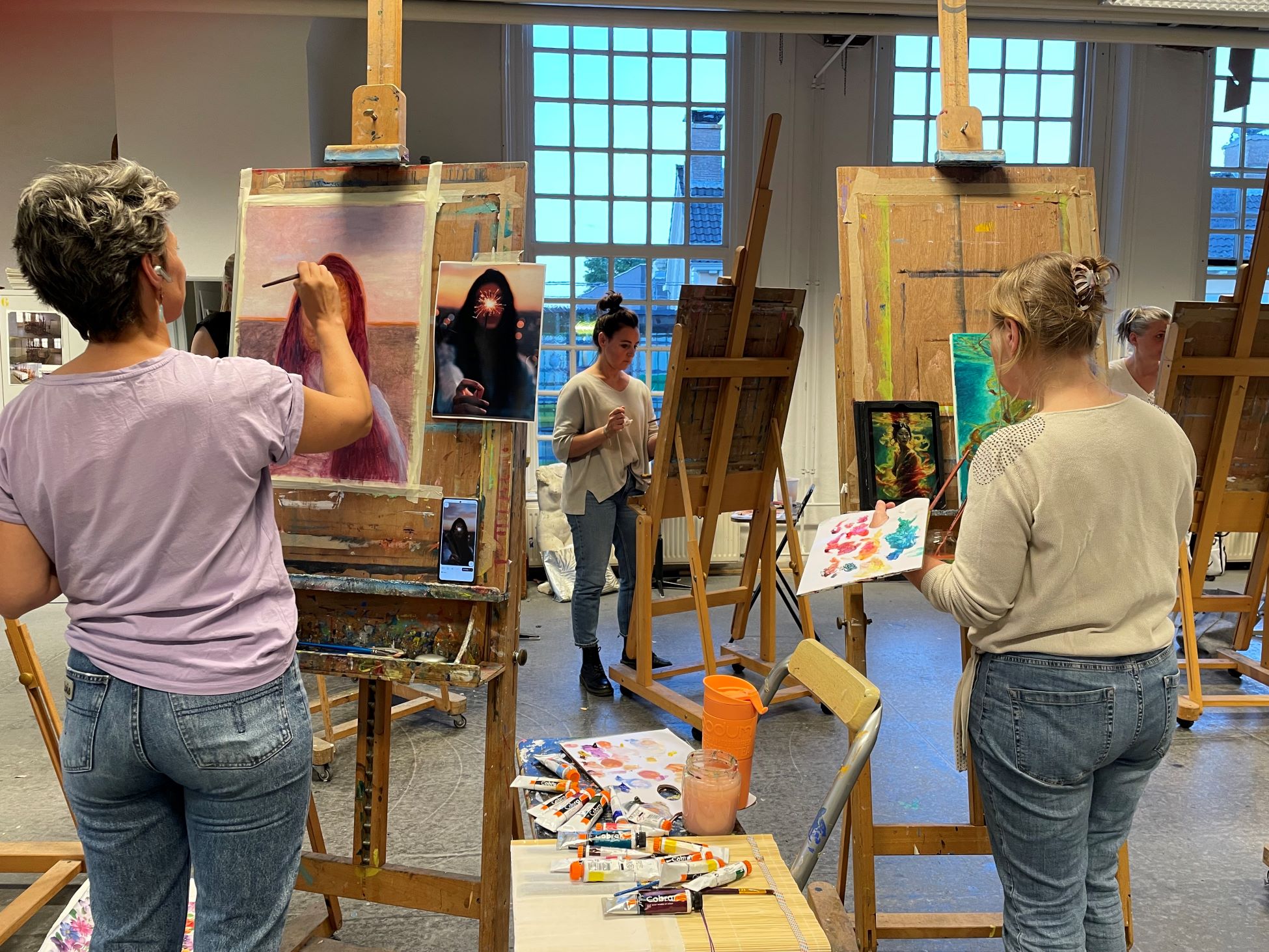 Ik vind het boeiend dat kunst en creativiteit bij mensen zoveel moois en interessants kan oproepen. Daarom ben ik naast kunstenaar ook docent. Hoe fijn is het als ik iemand met mijn opgedane kennis, ervaring en inzichten een stukje kan optillen in het schilderen en tekenen. Ik bied zowel kennis van technieken als inzicht in je leerproces. Ook werkt het goed om in een groep hiermee bezig te zijn en te kijken naar elkaar. Het is fijn om samen de mogelijkheden te verkennen die kunst een mens kan bieden.