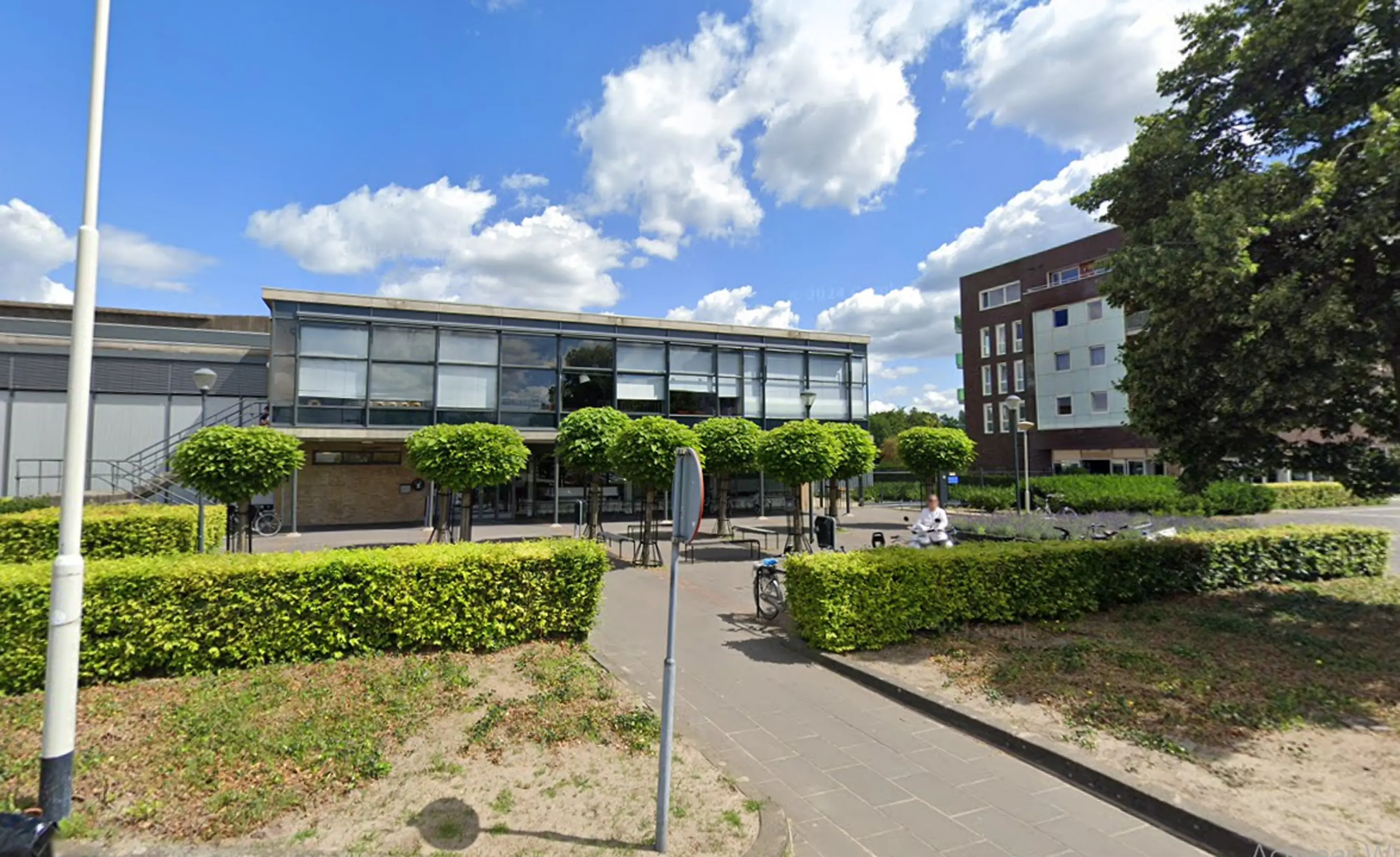 De ingang van het Digicafé bevindt zich bij de hoofdingang van De Scharen.