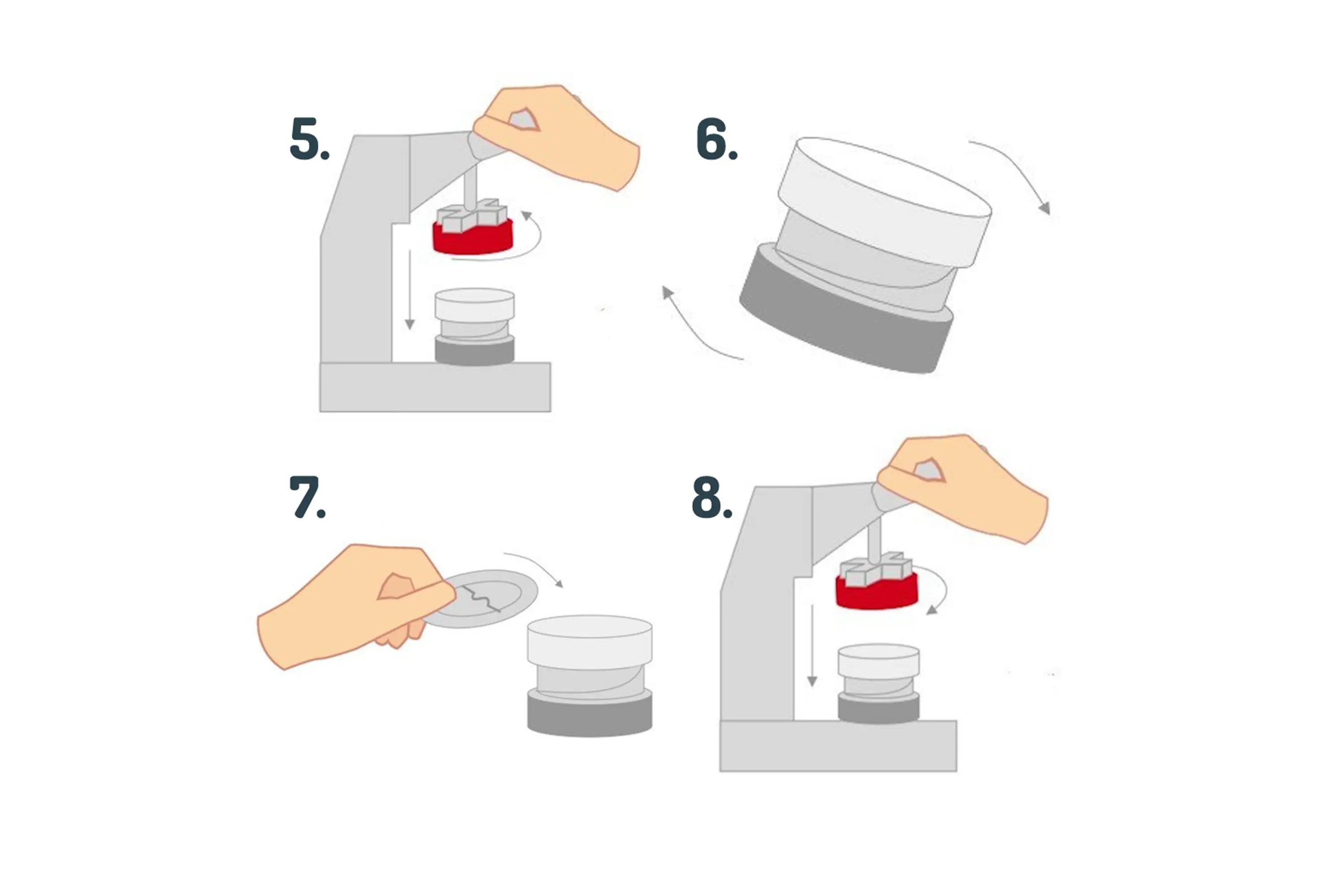 Druk hard naar beneden en haal dan de pers weer omhoog.