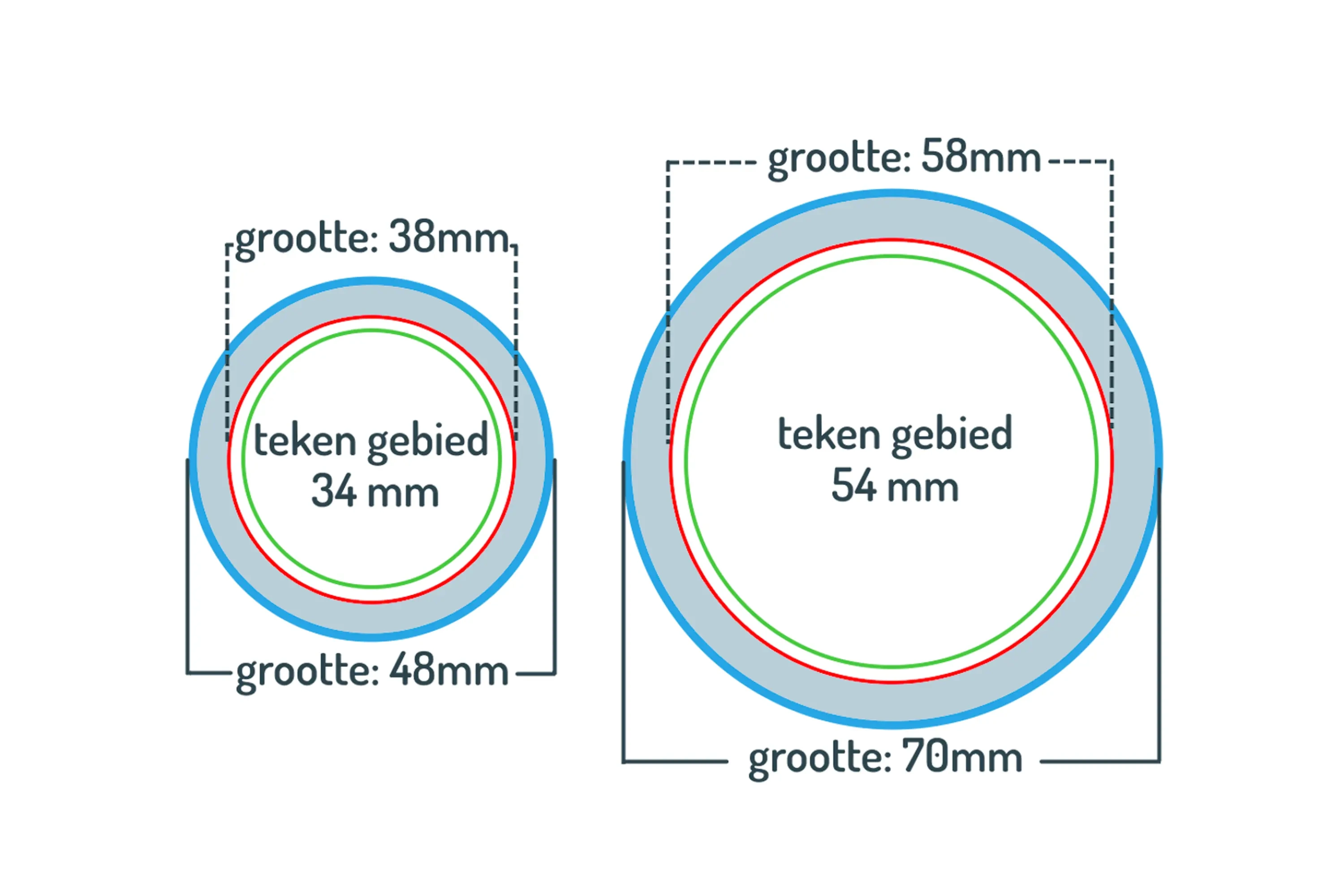Buitenkant: 70mm, Binnenkant: 54mm