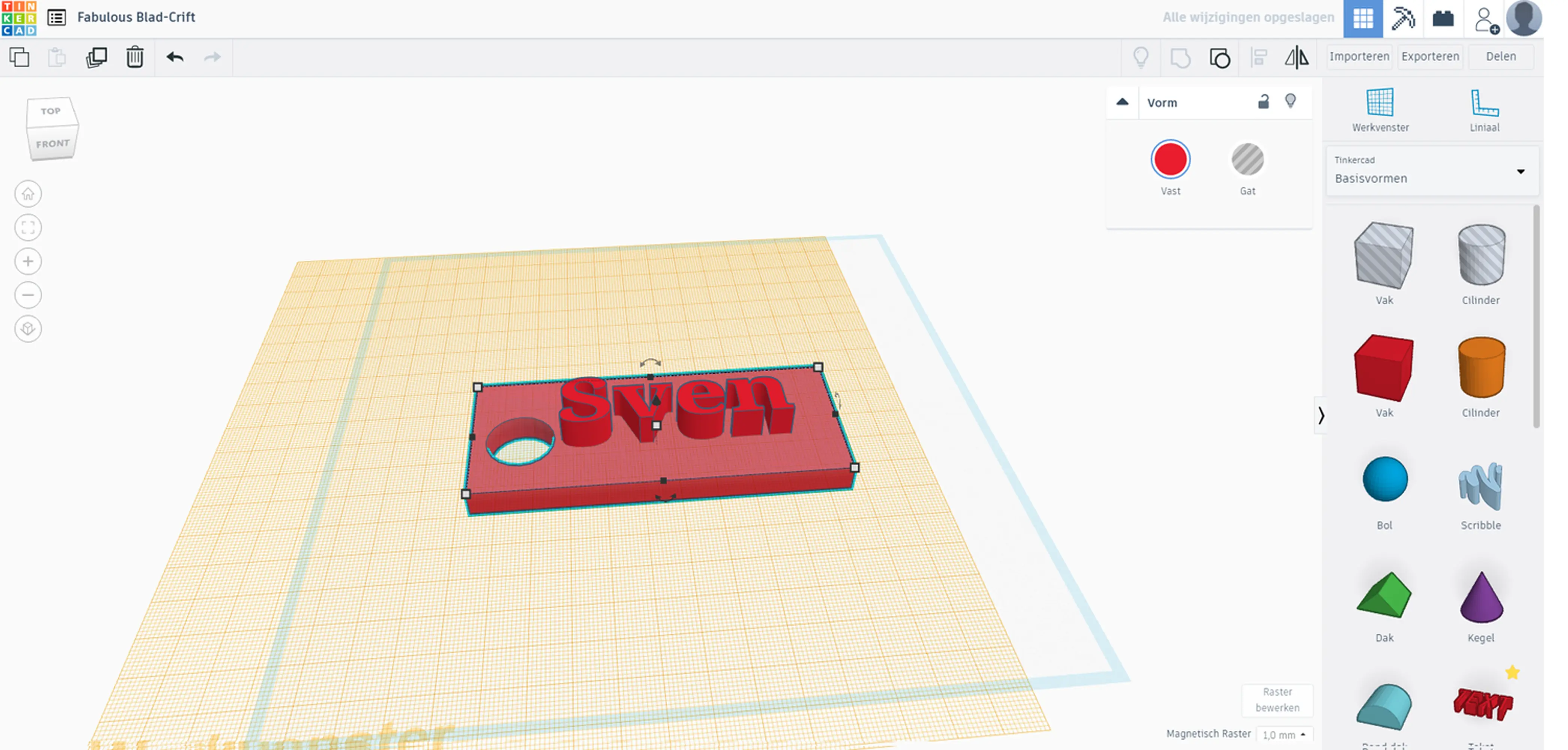 We hebben nu een sleutelhanger gemaakt. Wil je deze laten printen, kom dan langs bij de Makersbase in de Nieuwe Veste. Daar helpen we je graag.