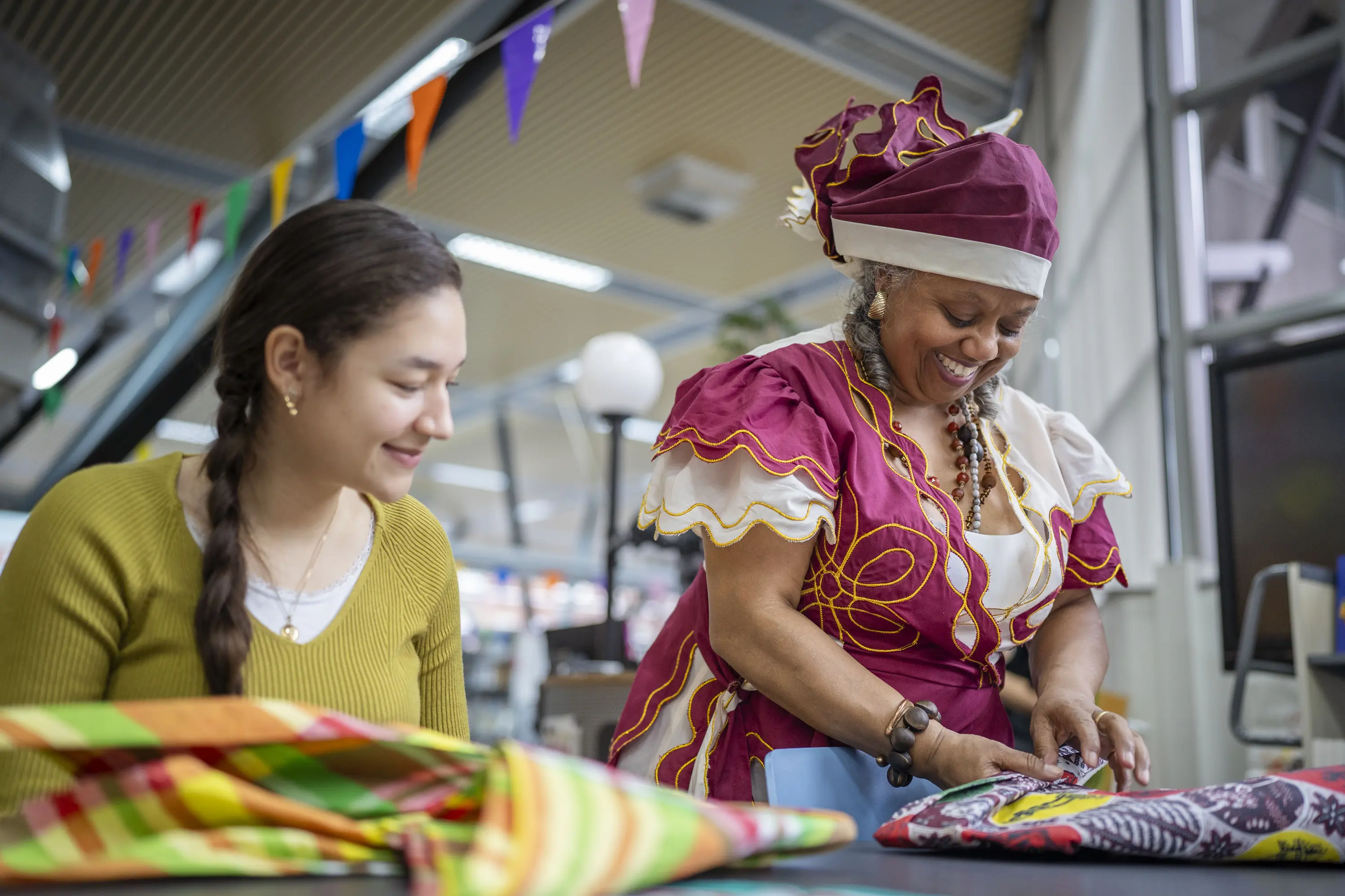 Grace Courtar, van Comité 30 juni/1 juli Breda, en Patricia Tel openden het leesfeest daarom met een prachtige inleiding op dit bijzondere boek, waarin identiteit en afkomst centraal staat. Patricia, die ook een workshop Angisa vouwen (traditionele Surinaamse hoofddeksels) verzorgden, vertelde hierbij onder andere over haar jeugd en wat het betekent om als donker kind op te groeien in een witte omgeving. Na de opening deelden ze de eerste exemplaren van de boekengeschenken uit.