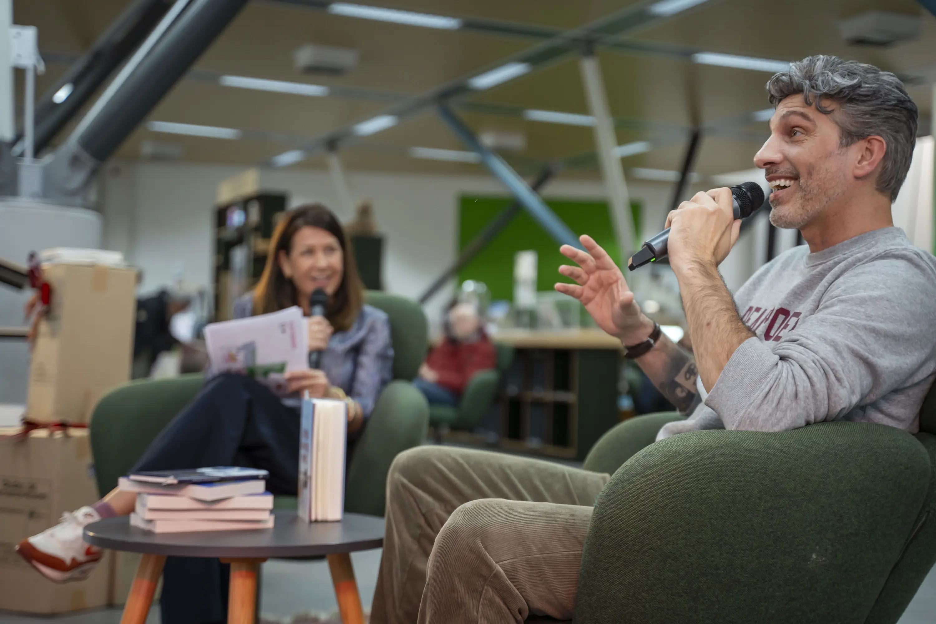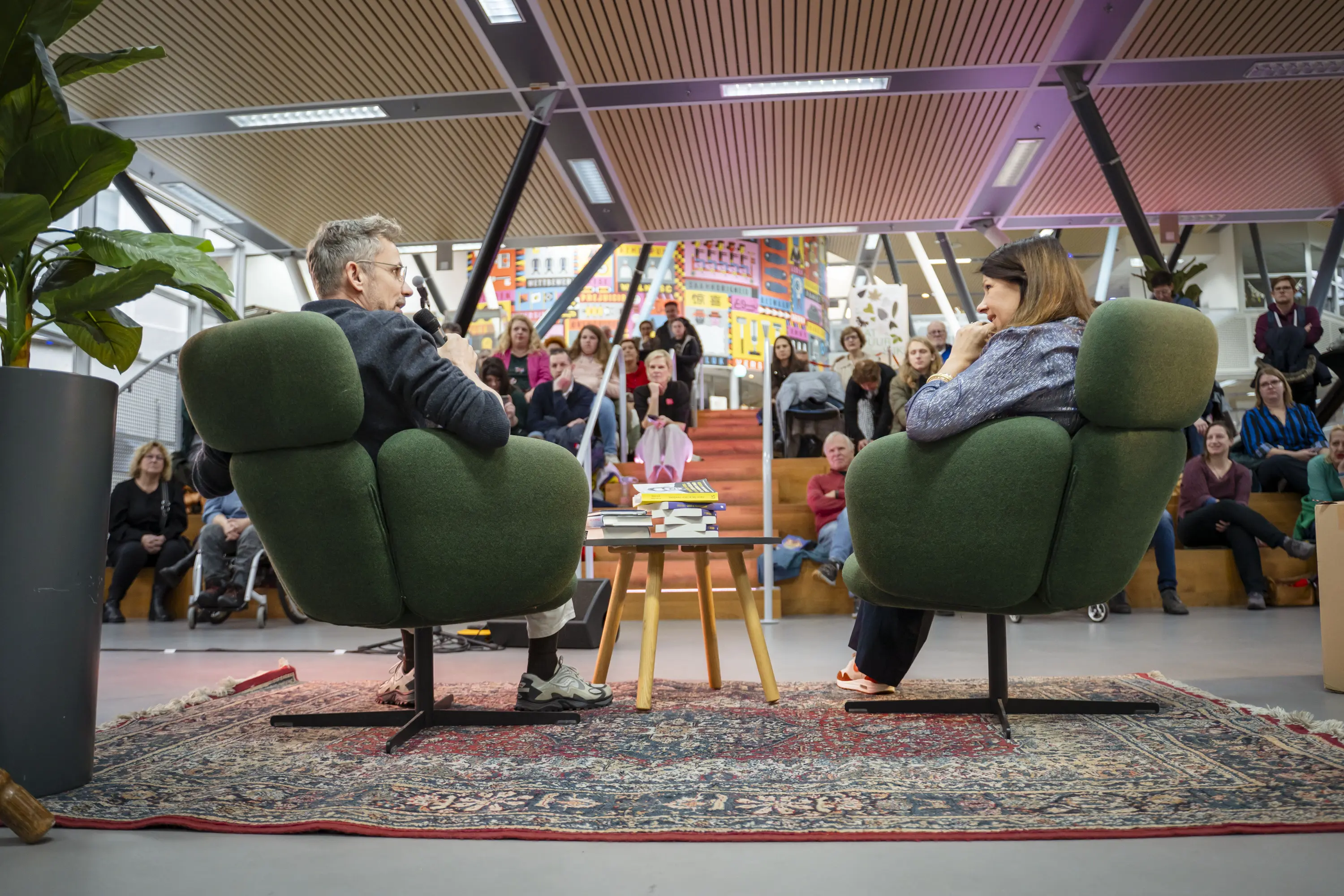 Bezoekers konden de hele dag genieten van interessante talks. De auteurs vertegenwoordigden een breed scala aan genres. Patrick Martens, acteur, televisiepresentator en schrijver, vertelde over zijn autobiografische boek Vandaag voel ik me goed en wat het betekent om als homoseksuele jongen op te groeien in een klein dorp. Sholeh Rezazadeh ging in op het verschil tussen het nuchtere Nederlands en de poëtische Iraanse taal en hoe ze dit weet om te zetten in prachtige Nederlandstalige boeken. Het gesprek met feelgoodauteur Chantal van Gastel ging over haar eerdere successen, de verfilmingen van boeken en over haar twee nieuwe romans die volgend jaar zullen verschijnen. Christie Middel bracht liedjes ten gehore die speciaal voor Chantals nieuwe roman zijn geschreven. Lex Paleaux sloot de dag af met een indrukwekkend gesprek over zijn boek Liften naar de hemel, dat dit jaar de Boekhandelsprijs heeft gewonnen en op de shortlist stond van de NS-publieksprijs. Na de talks bleven de auteurs nog even plakken om hun boeken te signeren bij De Vrije Boekhandel.