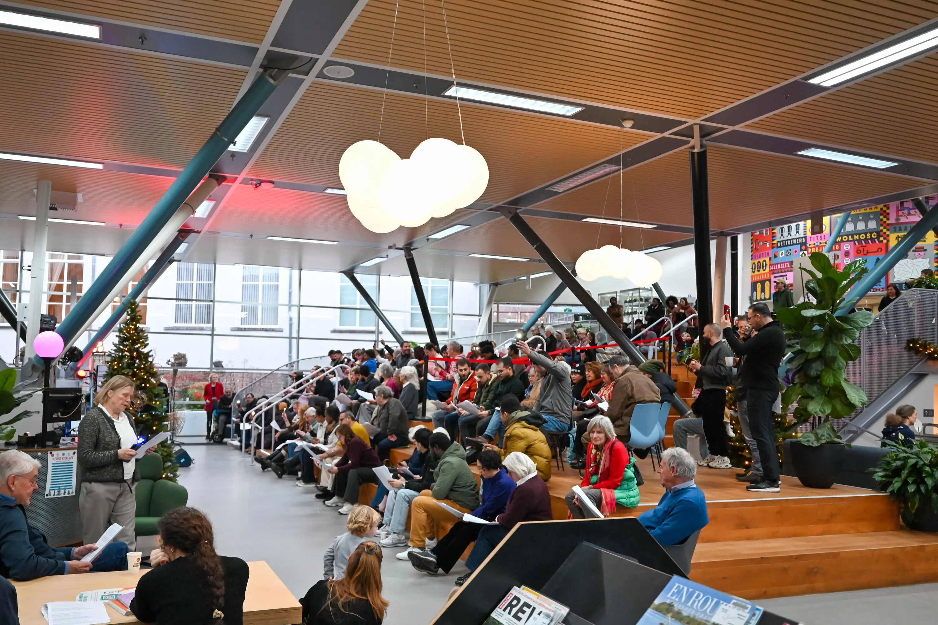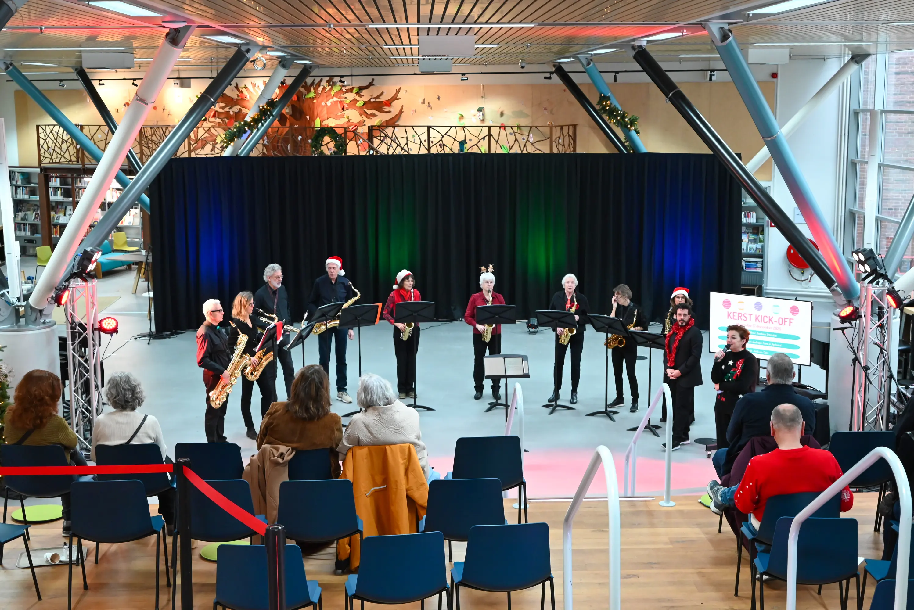 De ochtend begon met kerstliedjes met Harry Hendriks. In het verlengde van Zing Nederlands Met Me van het Digi-Taalhuis, zong hij allerlei Nederlandstalige kerstnummers samen met het publiek. Daarna waren de allerkleinsten cursisten aan de beurt met Kleuterdans en kwam het Orkest Nieuwe Veste Plus voorbij. Ook het Saxofoon Ensemble en leerlingen piano en keyboard lieten hun muzikale talent horen.