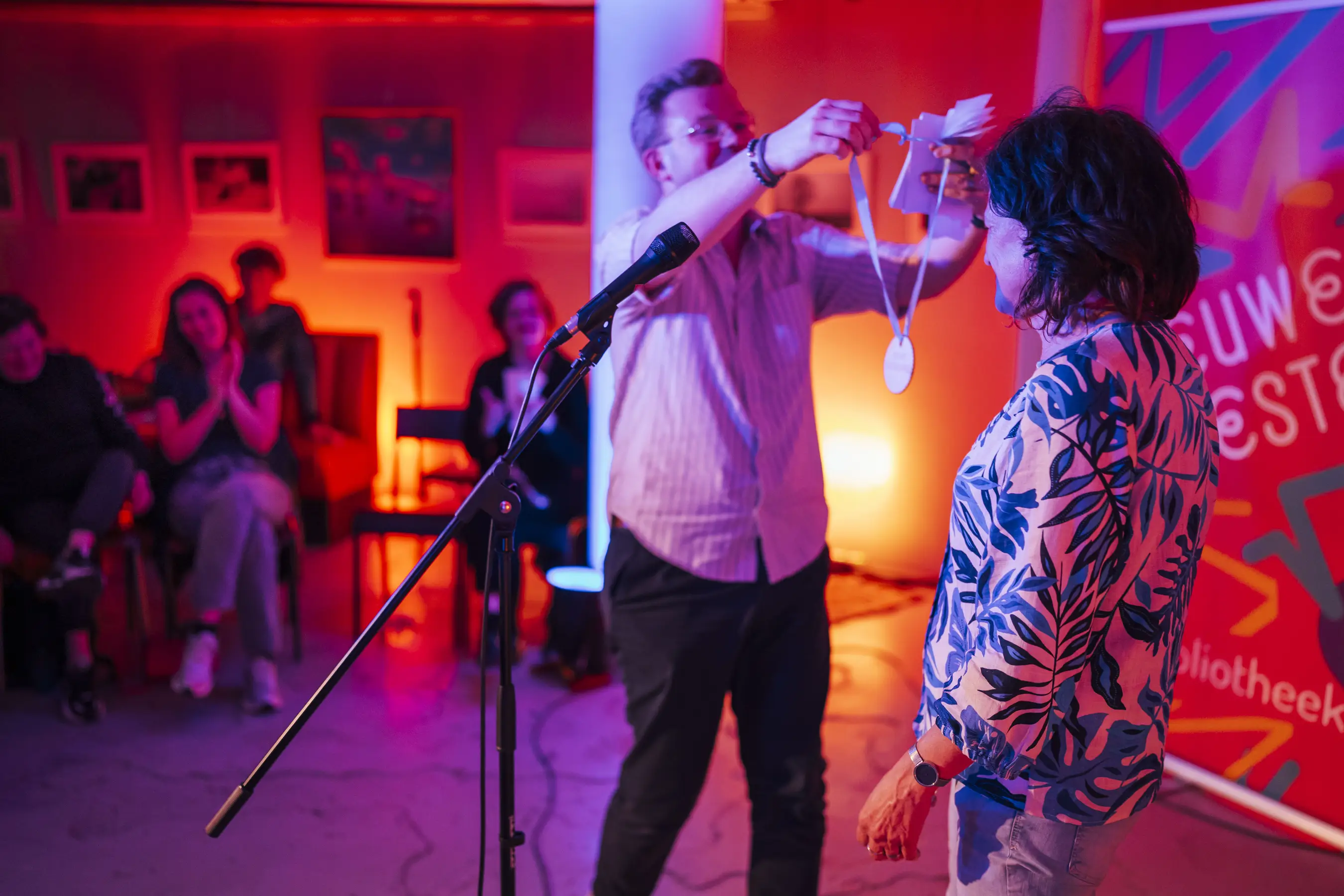 De avond was enorm snel uitverkocht. Publiek en presentatoren Tom en Renette zorgden voor een warm bad voor alle vertellers. Voor Nieuwe Veste smaakt deze vorm van verhalen delen absoluut naar meer.In oktober zijn we terug met een nieuwe workshopdag én verhalenavond met Stadsgasten, Echte verhalen.