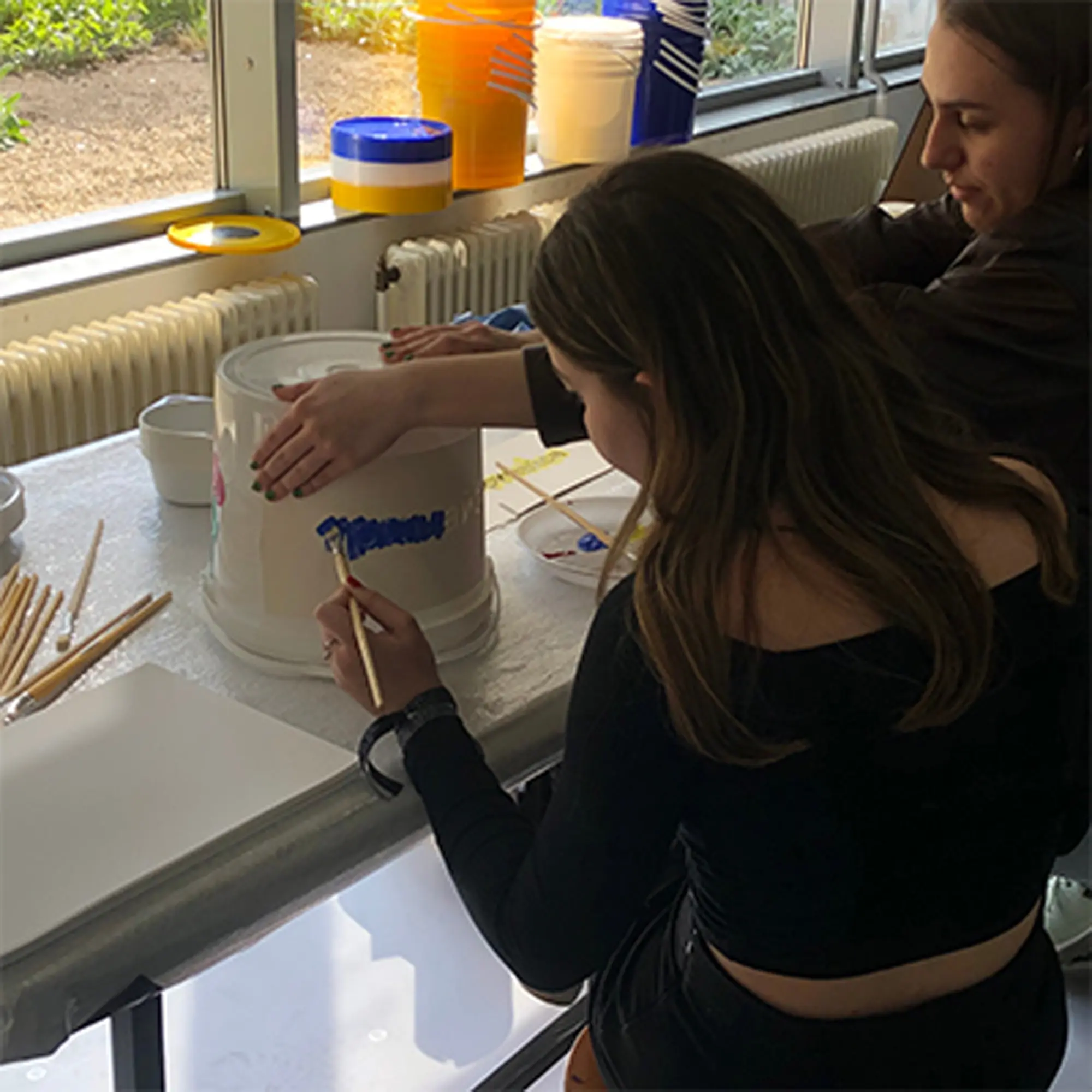kunnen worden. Op de schilderwerkplaats konden op creatieve wijze deze emmers beschilderd worden. Daarbij diende alleen het woord Trymaisya! op elke emmer te staan. Sommige hebben een boodschap, tekening of hun contactgegevens in de emmer gedaan, zodat ze contact op kunnen.
